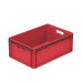 Euronorm red plastic container with solid walls, sturdy and stackable. Made of polypropylene, compatible with standard systems and certified for food contact.